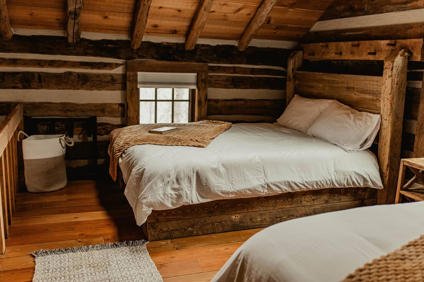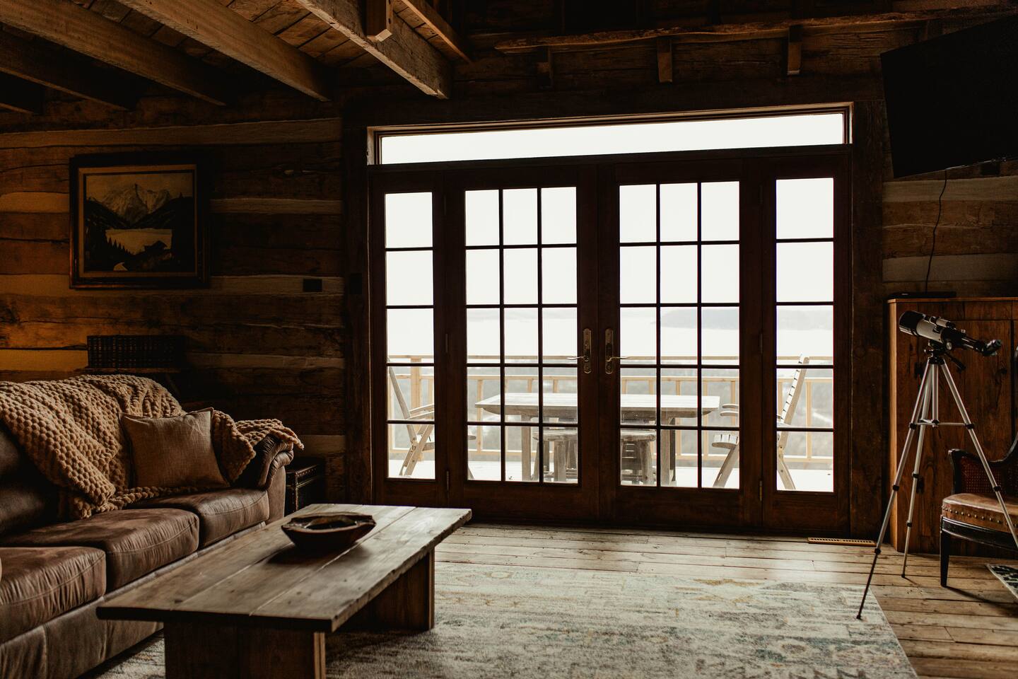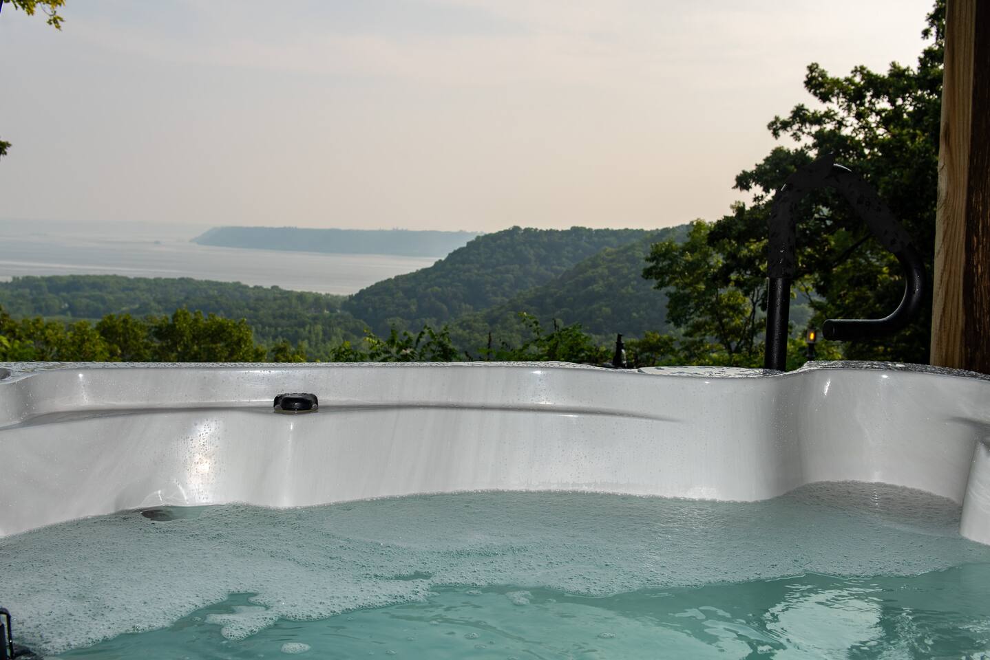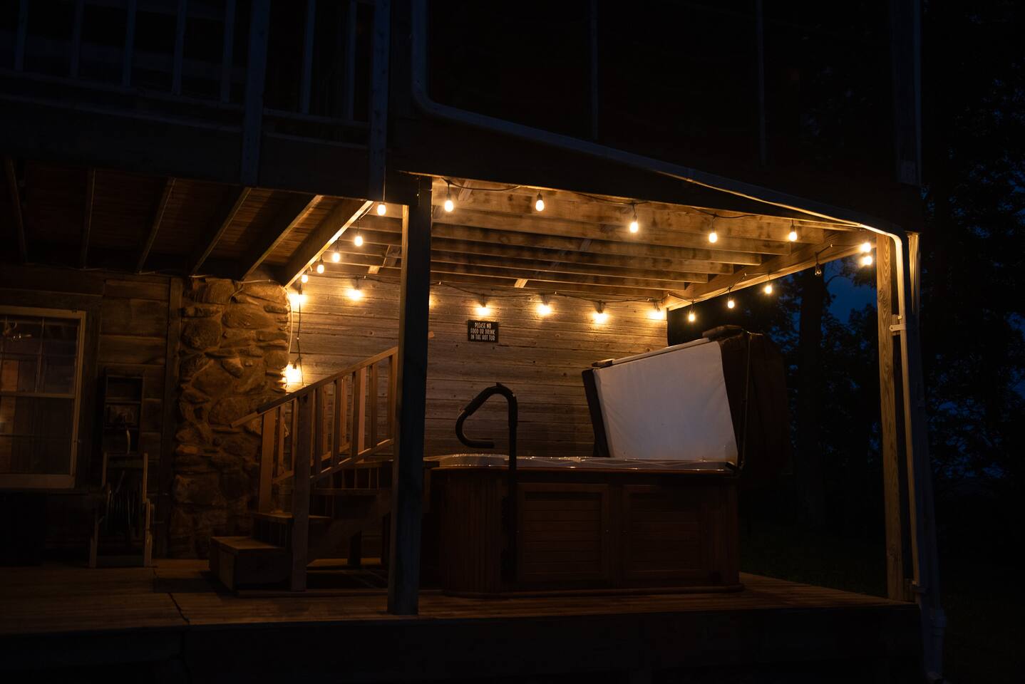 The cabin is rustic but has all of the comforts and amenities of home. The view from the balcony/porch/hot tub is second to none.