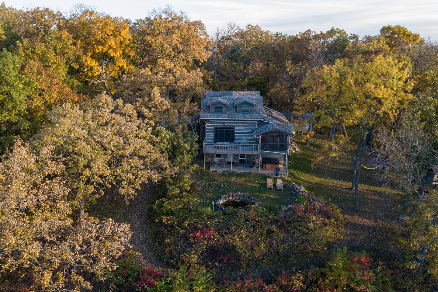 In the heart of the Driftless, atop the Mississippi , enjoy the tranquility of a centuries-old Appalachian cabin. Relax on the deck & take in dramatic sunsets, soaring eagles & glistening stars. Soak in the hot tub & gaze at the majestic Mississippi. Host unforgettable dinners in the screened deck & share stories by the fireplace. Only 30 mins from Viroqua & Prairie du Chien, experience the natural beauty of the driftless region - hiking, fishing, hunting, biking - whatever inspires you.